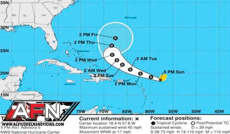 Según la Oficina Nacional de Meteorología (Onamet) la tormenta tropical Peter, actualmente a unos 700 kms al este del norte de Las Antillas Menores, tiene vientos máximos sostenidos de 75 km/h, y se mueve hacia oeste/noroeste a unos 28 km/h. Informó que dan seguimiento al fenómeno.