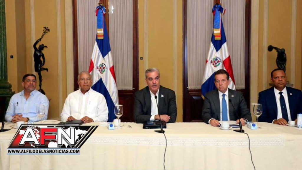 Abinader sostuvo una reunión con empresarios y comerciantes celebrada en el Palacio Nacional, donde no permitieron preguntas de los periodistas.