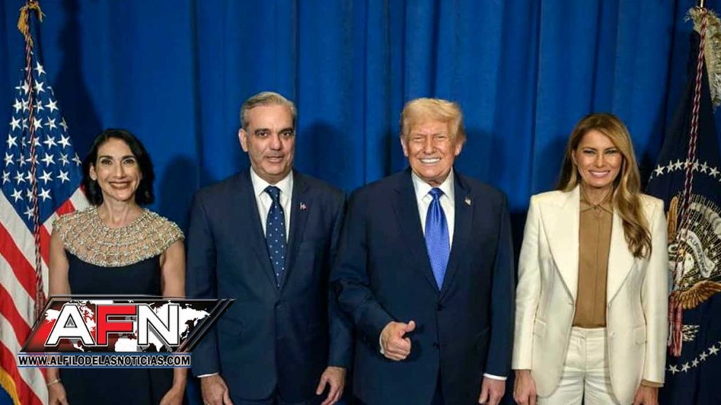 A través de su canal de WhatsApp, Abinader compartió una fotografía en la que aparece junto a la primera dama, Raquel Arbaje, acompañados por Donald Trump y Melania Trump.