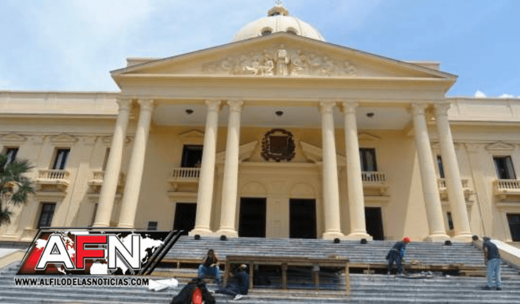 Un grupo de obreros se encarga de armar una plataforma de madera colocada en las escalinatas del Palacio Nacional, con un saliente en el centro, donde se colocará el podio. Desde allí, se espera que el presidente se dirija a las cámaras de televisión y a un grupo de espectadores colocados enfrente bajo carpas.