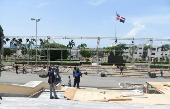 Un puñado de obreros trabajaba la mañana de este lunes en el montaje de una tarima, carpas y equipos técnicos desde donde el presidente Luis Abinader dirigirá este miércoles, a las 9:00 de la noche, una alocución al país con motivo del primer aniversario de su Gobierno.