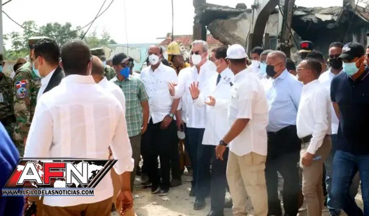 San Cristóbal.- El presidente Luis Abinader visitó este martes la zona de desastre tras la explosión en la provincia San Cristóbal, cuya cifra oficial de fallecidos hasta el momento es 10.