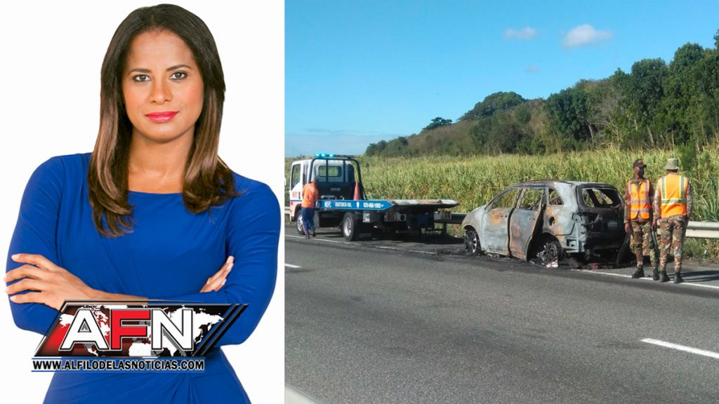 BANI.- La comunicadora Addis Burgos y su familia salvaron la vida milagrosamente, luego de que su vehículo resultara quemado este sábado tras un accidente en la carretera San Cristóbal-Baní, cuando se dirigía a llevar ayudas a niños de escasos recursos de la provincia Elías Piña.