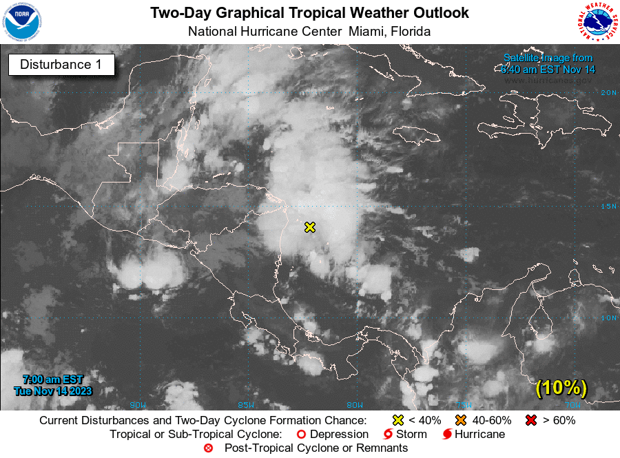 El Centro Nacional de Huracanes sostuvo, en su boletín de este martes, que las condiciones ambientales parecen favorables para un desarrollo adicional de este sistema y es probable que se forme una depresión tropical hacia el final de esta semana mientras el sistema comienza a moverse hacia el noreste a través de las partes occidental y central del mar Caribe.