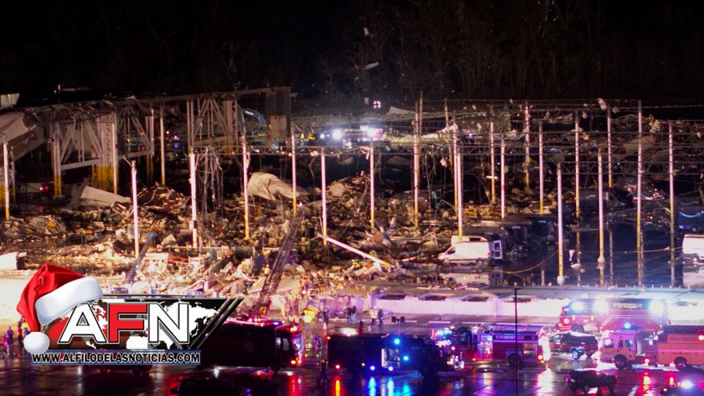 Lo peor ocurrió en la ciudad de Mayfield, de unos 10.000 habitantes, donde un tornado derrumbó una fábrica en la que trabajaban en ese momento más de un centenar de personas, provocando una cifra “masiva” de víctimas.