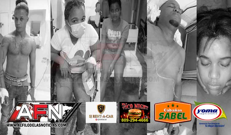 Los lesionados son Lili Paulino; Daniela González; Jomelin González; Juliany Bautistas y otro hombre que no ha sido identificado.