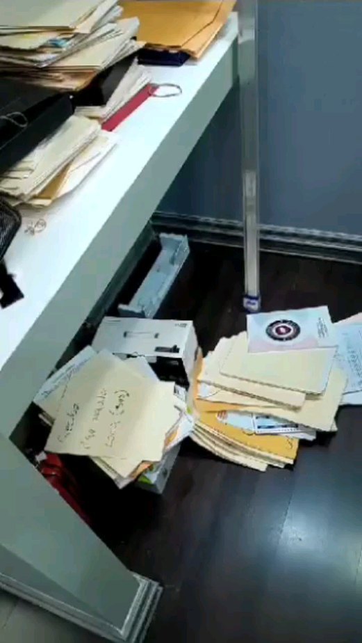 Asimismo, fue colgado un video donde muestra como quedó la oficina tras el allanamiento, donde figuran decenas de documentos y sobres en el suelo.