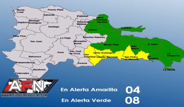 En ese sentido, en alerta amarilla se encuentra San Cristóbal, San Pedro de Macorís, Distrito Nacional y Santo Domingo.