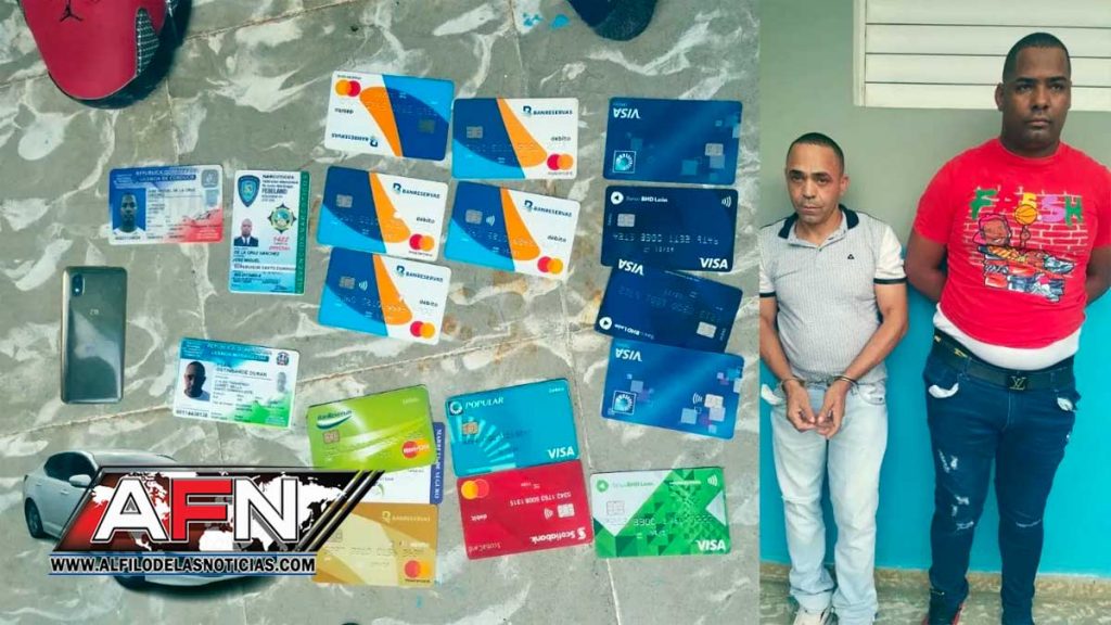A De La Cruz Sánchez y Ostimborde Durán les ocuparon 15 tarjetas de débitos de diferentes entidades bancarias, así como también la suma de 4,027 pesos en efectivo y dos celulares marcas.