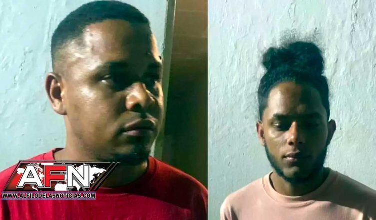 Los detenidos en flagrante delito son Johan Torres y Charly Cruz, de 31 y 19 años de edad, respectivamente, a quienes se les aplicó técnicas policiales para someterlos a la obediencia indicó la Policía.