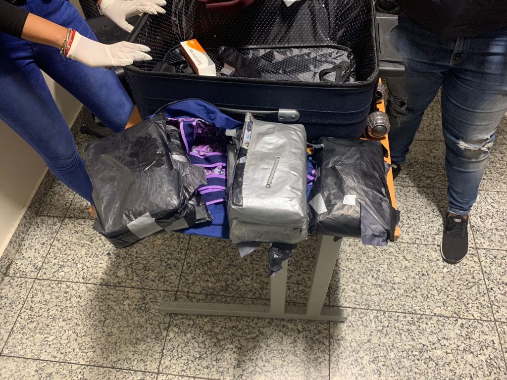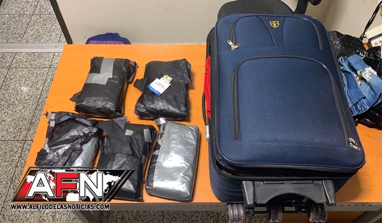 El reporte de la entidad antinarcóticos manifiesta que tras inspeccionar el equipaje de la extrajera encontraron dentro de una especie de frazada, los cinco paquetes de la sustancia, envueltos en papel carbón y cinta adhesiva.
