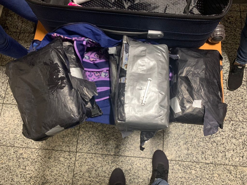 Las autoridades indicaron que mientras realizaban labores de supervisión en el área de aduanas, unidades caninas alertaron de sustancias extrañas en uno de los equipajes.