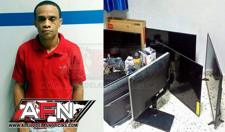 Según el informe policial, al detenido se le ocupó la cantidad de seis televisores plasma, cuatro de 42 pulgadas, uno de 32 pulgadas y uno de 21 pulgadas.