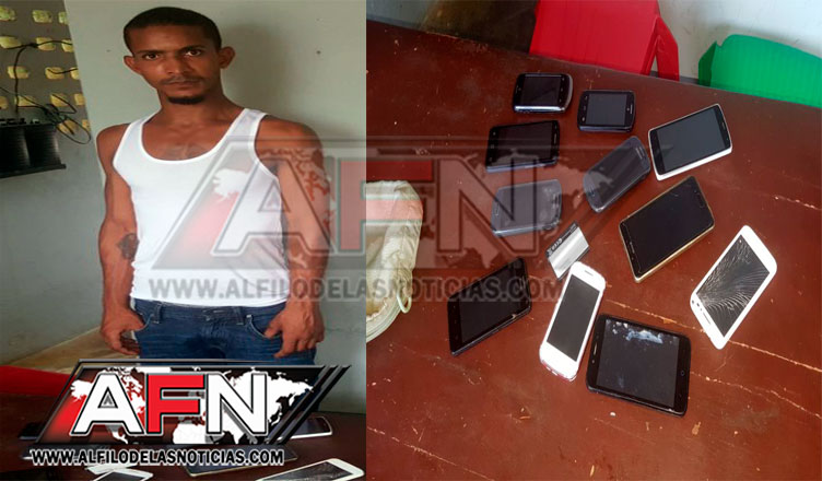Según el informe policial, Vásquez fue sorprendido en flagrante delito luego de ocupársele un bolso gris conteniendo en su interior once celulares de diferentes marca y modelo, que lo había sustraído de la residencia del señor Rafael Contreras, de 59 años de edad, residente el distrito municipal antes mencionado.