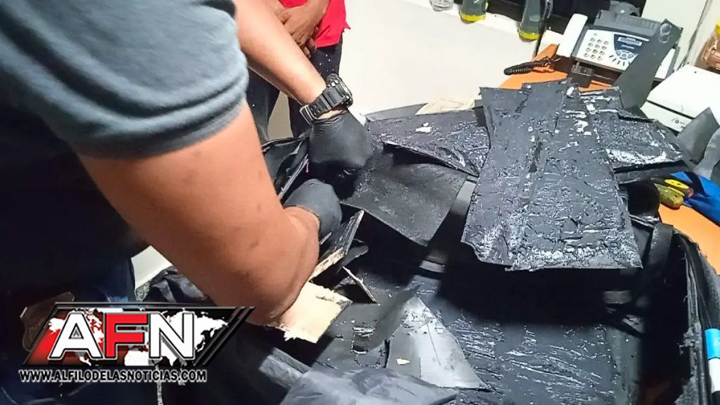 La nota de prensa agrega que en presencia de un fiscal, se procedió a realizar una inspección más rigurosa, descubriendo en la maleta un doble fondo, con seis láminas de una sustancia que se presume es cocaína, con un peso preliminar de 3.35 kilogramos.