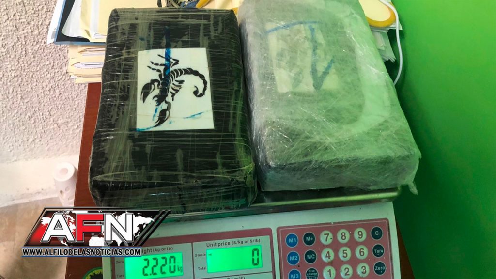 Al inspeccionar el equipaje del extranjero, las autoridades incautaron envueltos en fundas plásticas y prendas de vestir, dos paquetes de un polvo que se presume es cocaína.