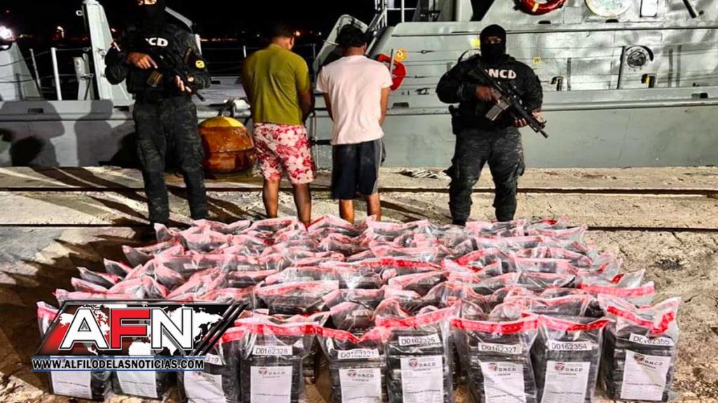 La DNCD dijo que los dos hombres, de nacionalidad dominicana, están siendo puestos a disposición del Ministerio Público de la provincia de Barahona, mientras se profundiza la investigación, «para ubicar y apresar a otros posibles vinculados al frustrado intento de introducir el alijo a territorio dominicano».