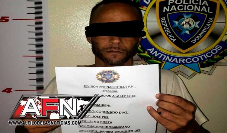 El detenido fue identificado como Maireni Coronado Díaz (José Pin) residente en el sector Balaguer, en la referida provincia.