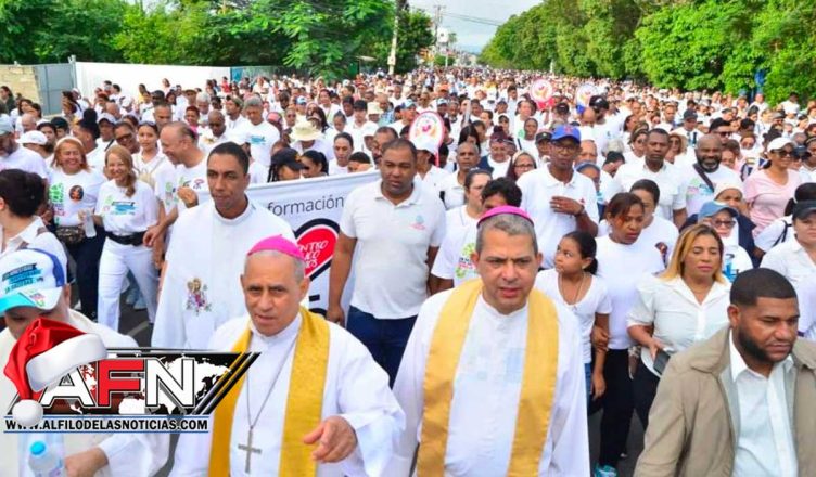 La caminata partió desde el estadio Cibao y recorrió varias calles de la ciudad, hasta llegar al Parque Central, donde monseñor Freddy de Jesús Bretón, en su homilía destacó la importancia de enseñar el evangelio en la familia.