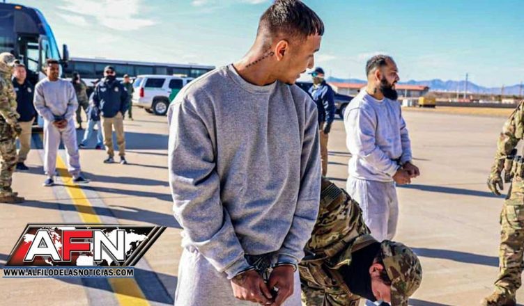 El martes pasado, el Departamento de Seguridad Nacional publicó imágenes de «extranjeros criminales» que se preparaban para abordar el primer vuelo al centro de detención de migrantes en la estación naval, los cuales, según el comunicado, eran integrantes del Tren de Aragua, una organización delictiva nacida en las cárceles venezolanas.
