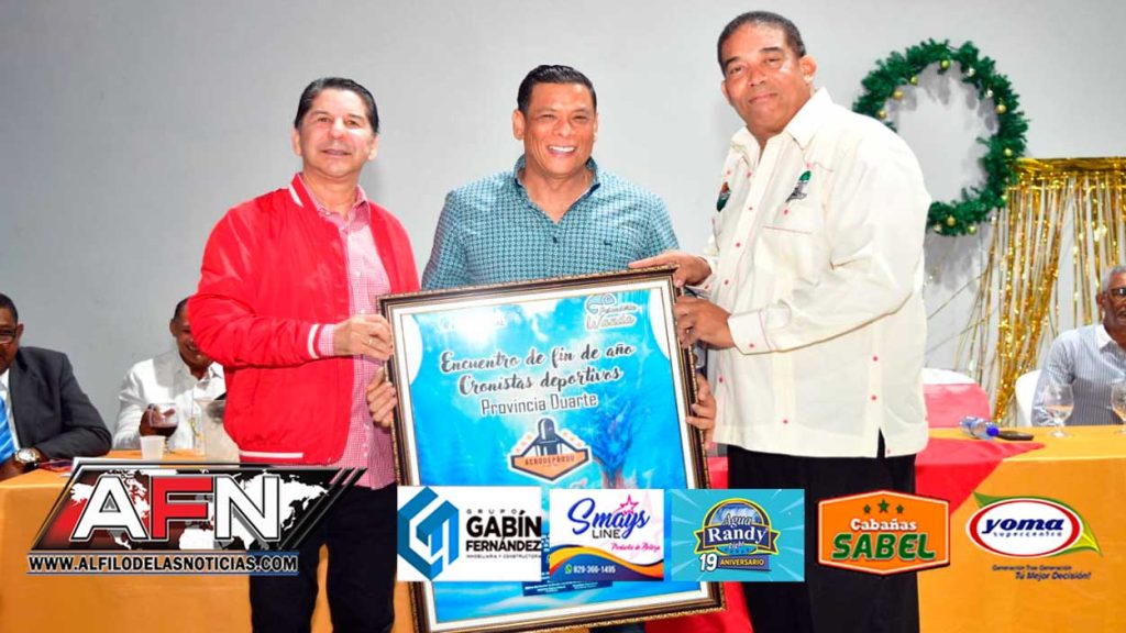 La placa de reconocimiento fue entregada por el doctor José Aníbal García, alto ejecutivo de la Cooperativa San Rafael del municipio de Tenares, junto al presidente de la Asociación de Cronistas Deportivos de la Provincia Duarte, el periodista Tony Reyes.