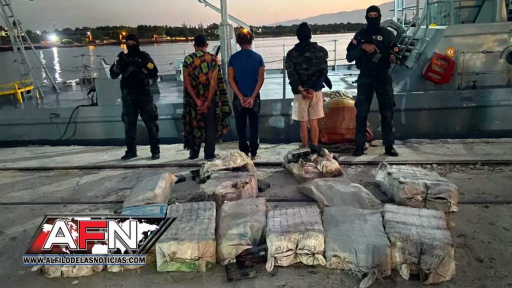 La embarcación de unos 23 pies de eslora, sin nombre ni matricula, habría llegado a costas dominicanas procedente de Sudamérica, con dos motores fuera de borda de 75 caballos de fuerza cada uno.