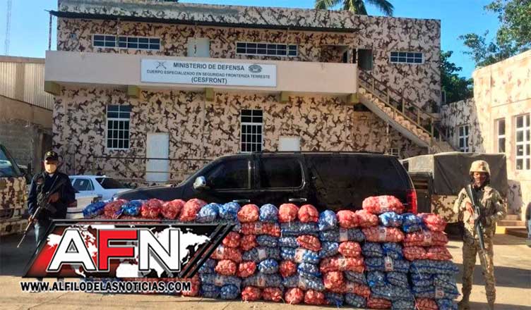 MONTECRISTI. Miembros del Cuerpo Especializado en Seguridad Fronteriza Terrestre (Cesfront), del J-2 y la Armada detuvieron este viernes una yipeta cargada de ajo introducido de contrabando al país.
