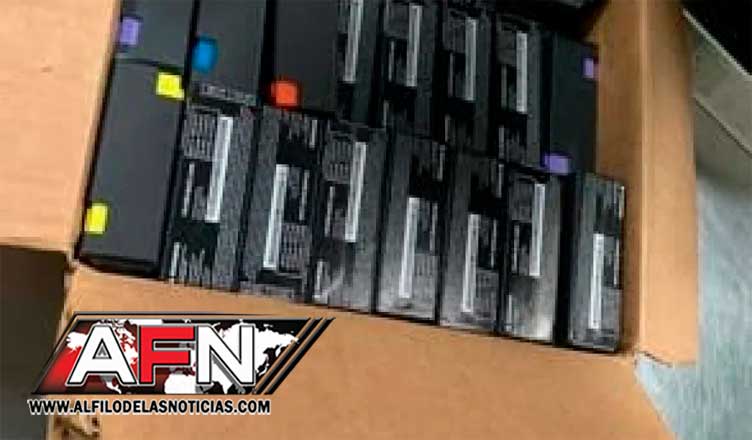 SANTO DOMINGO. – Miembros de la Dirección Nacional de Control de Drogas (DNCD) y la Dirección General de Aduanas, ocuparon una caja que contenía 50 unidades de cartuchos de cigarrillos electrónicos rellenos de una sustancia que las autoridades presumen es heroína líquida o cocaína.