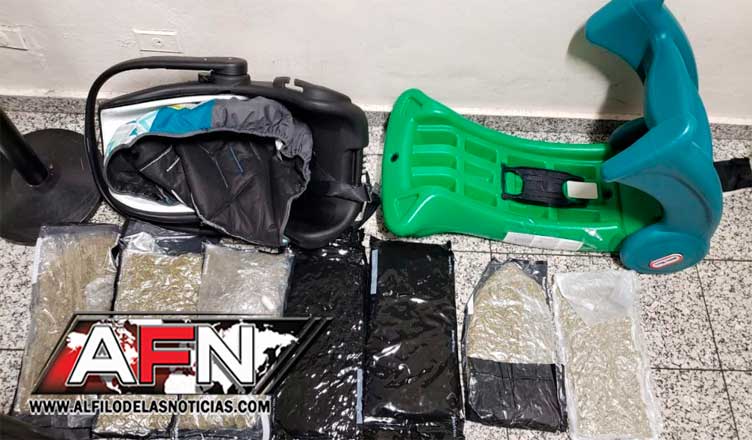 SANTO DOMINGO.- La Dirección Nacional de Control de Drogas (DNCD) informó este lunes que con apoyo del Cuerpo Especializado de Seguridad Aeroportuaria, Aduanas y bajo la coordinación del Ministerio Público, ocuparon en el Aeropuerto Internacional de Américas, siete paquetes presumiblemente de marihuana, escondidos en el interior de una silla para bebes y en un pequeño tobogán.