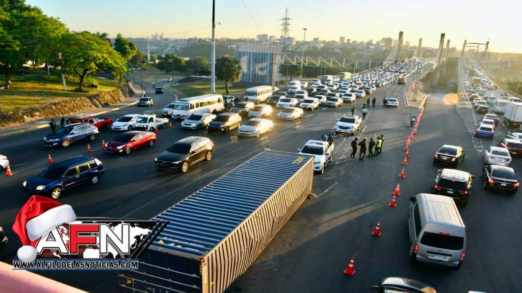 SANTO DOMINGO. – Agentes de la Dirección General de Seguridad de Tránsito y Transporte Terrestre (Digesett) removieron de la vía el furgón que quedó en medio del puente Juan Bosch, luego de que su conductor impactara con el muro de contención del viaducto en dirección Este-Oeste.
