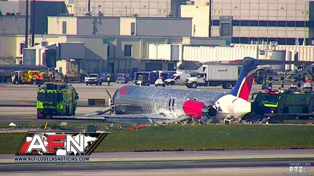 MIAMI.- Un avión que llegaba de Santo Domingo al Aeropuerto Internacional de Miami se incendió después de hacer un aterrizaje forzoso, destrozando una torre de comunicaciones y un pequeño edificio.