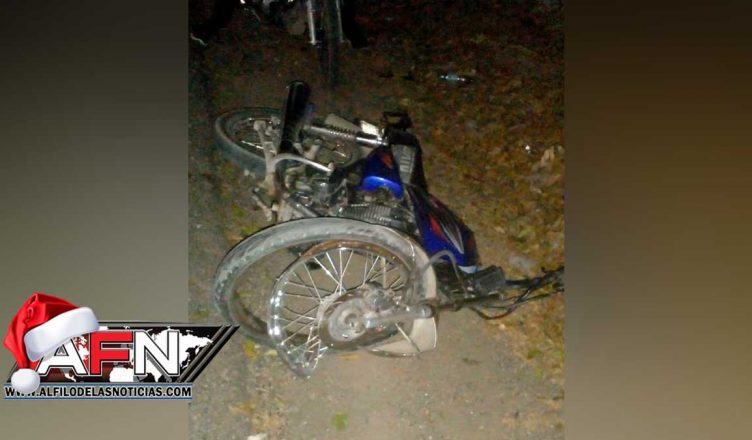 LAS CHARCAS, AZUA.- Un muerto y dos personas heridas fue el resultado de un choque entre dos motocicletas, hecho ocurrido en la carretera que enlaza la comunidad de Estebanía con Las Charcas, en esta provincia de Azua.