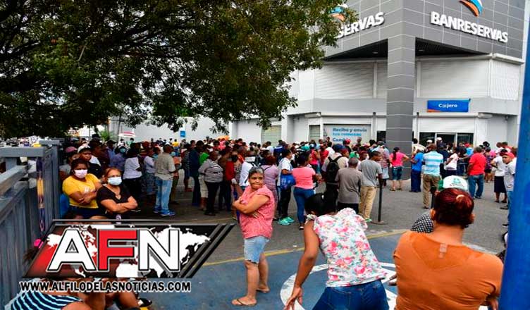 Santo Domingo, RD.- Desde tempranas horas de la mañana decenas de personas hacen largas filas para entrar a los bancos, principalmente para retirar dinero, luego de que las entidades informaran que sólo estarán abiertas  8:30 de la mañana hasta las 12:30 de la tarde.