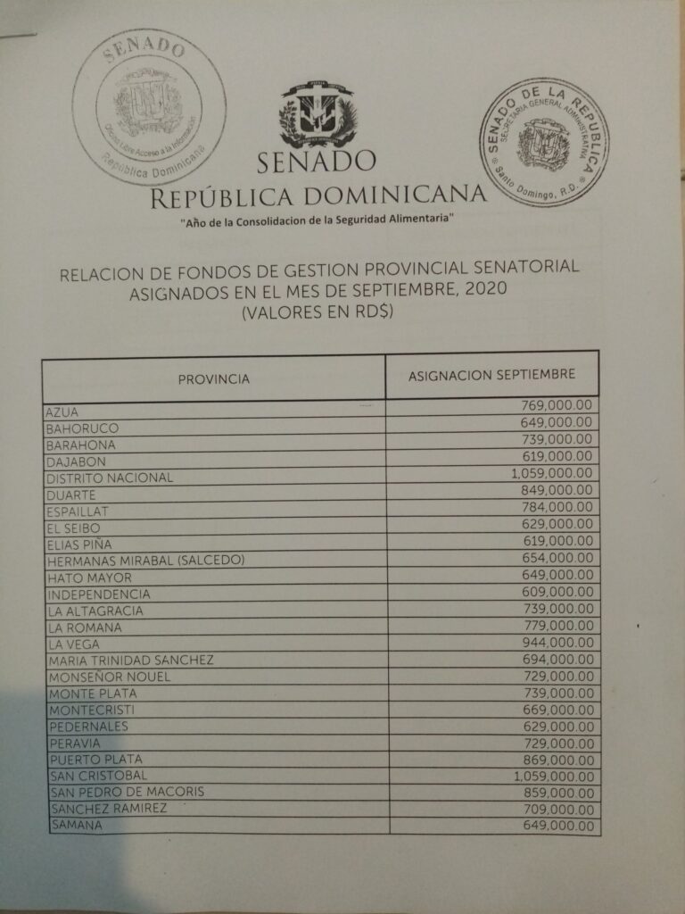 SANTO DOMINGO.- El fondo de gestión provincial que reciben los senadores, mejor conocido como ‘barrilito’, le cuesta a la Cámara Alta la suma de $22,180,000 pesos al mes, según datos suministrados a El Nuevo Diario por la Oficina de Libre Acceso a la Información del Senado.