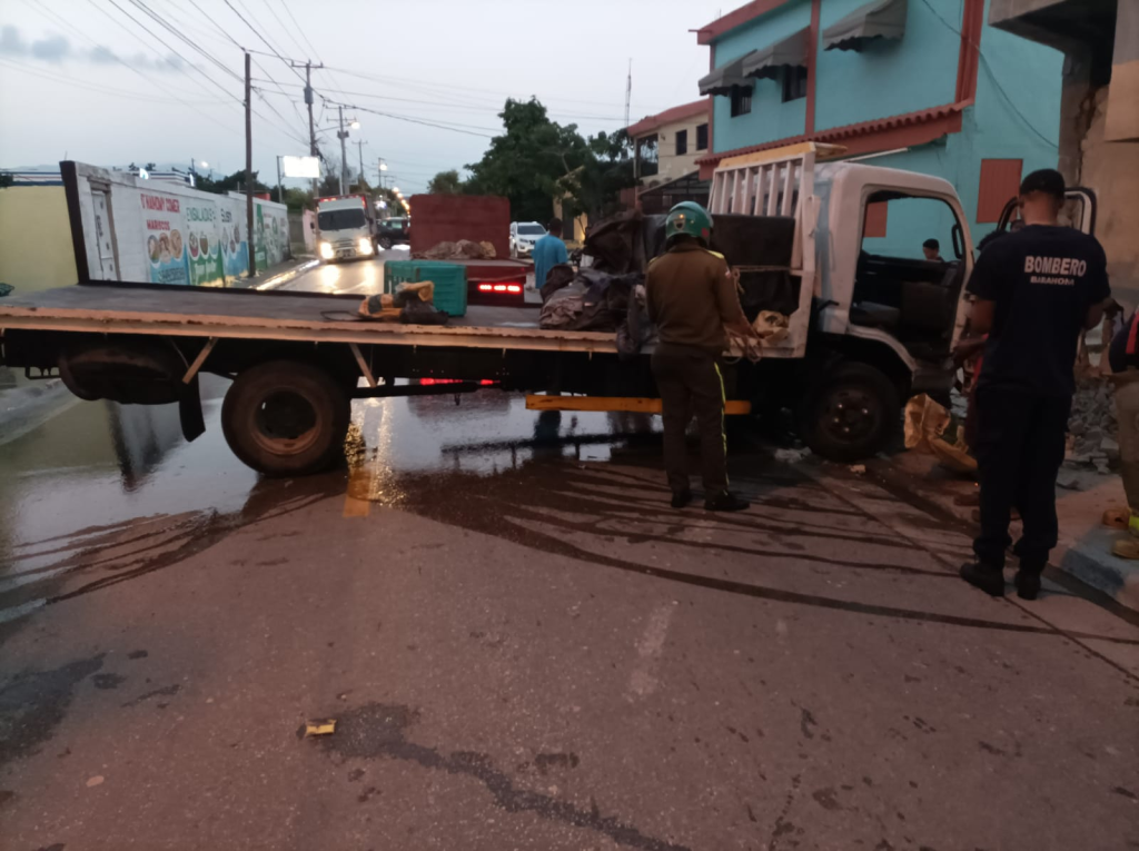 BARAHONA.- La mañana de este domingo conductor de un camión impacto una pared delantera de una vivienda, en un hecho ocurrido pasada las 6:20 a.m. en la avenida Antonio Mendez, próximo a la Universidad de Santo Domingo (UASD) en Barahona.