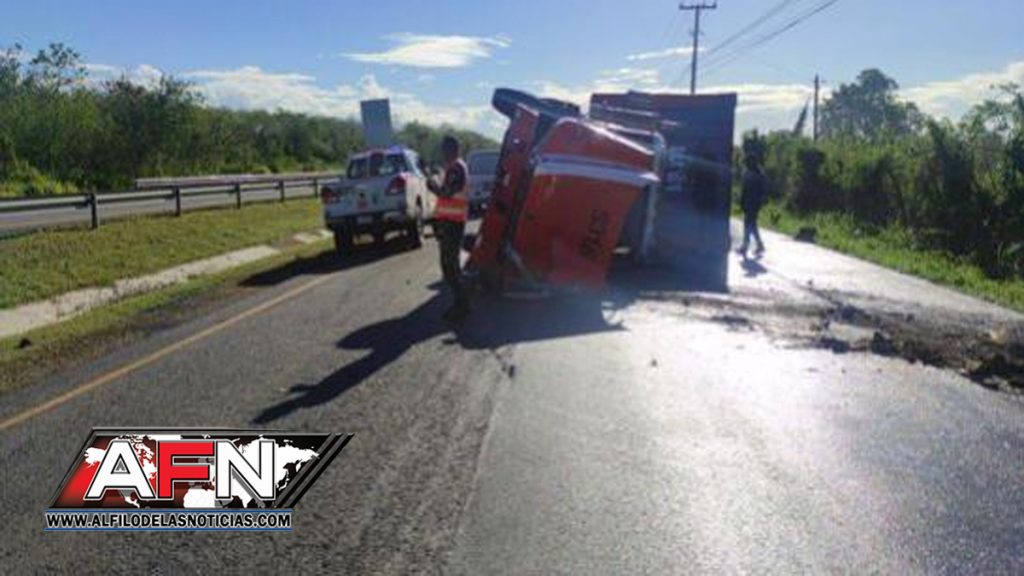 Hasta el momento se espera una grúa para mover el contenedor y se les recomienda a los conductores transitar con cuidado hacia La Romana, ya que hay aceite vertido en la carretera, lo cual puede provocar deslizamiento.