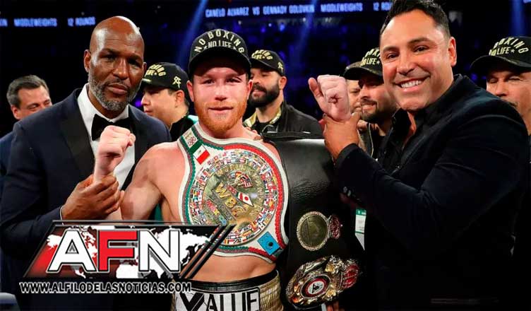 “Estamos contentos porque ‘Canelo’ está en casa (el CMB) y estamos de acuerdo en esta pelea en 168 libras, él representará al CMB”, añadió Sulaimán.
