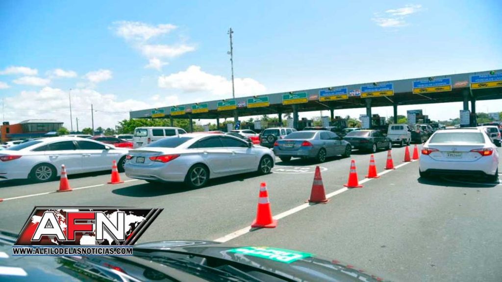 SANTO DOMINGO.- La larga fila de vehículos para pagar el peaje de la autopista Las Américas este Sábado Santo refleja el gran número de personas que aun faltando poco tiempo para finalizar la Semana Santa siguen abandonado el Gran Santo Domingo.