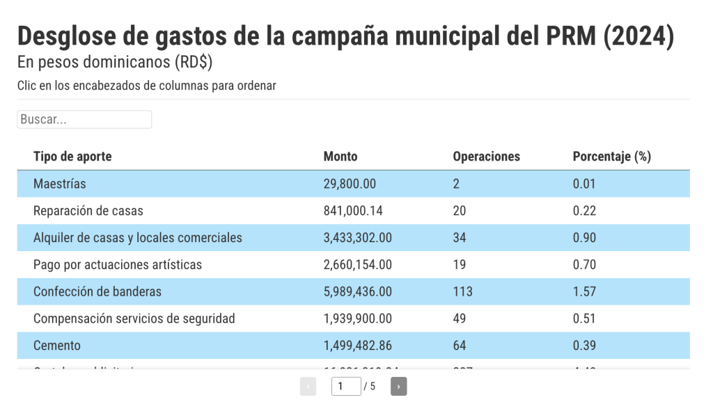La entidad oficialista, que para esa contienda electoral se alzó con 121 alcaldías y 150 distritos municipales, gastó aproximadamente 381,875,550 pesos durante todo su proceso de campaña.