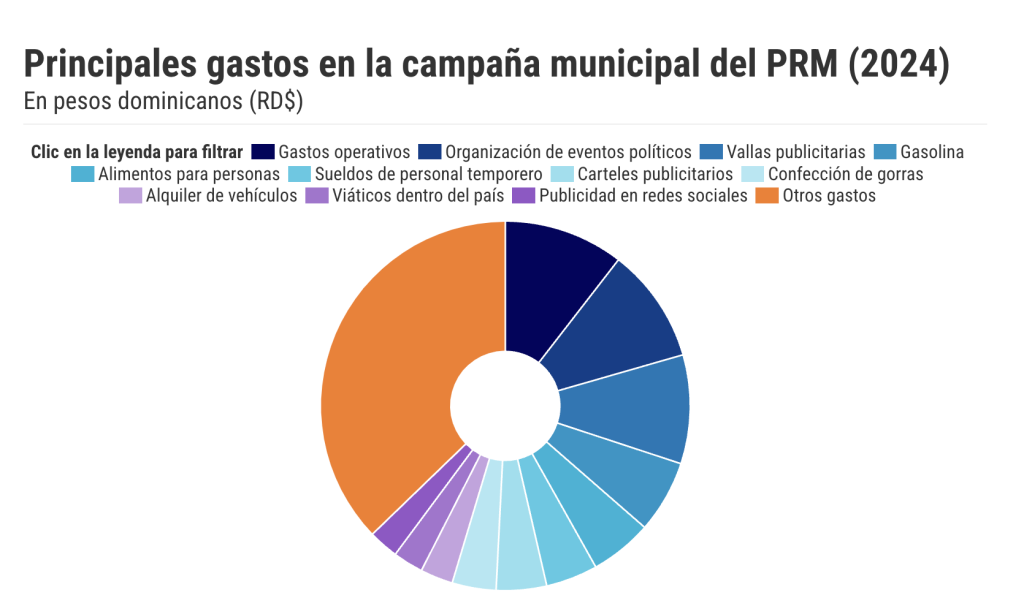 Los principales puntos en los que se invirtió durante la campaña municipal del partido oficialista fue en materia de gastos operativos y por la organización de eventos políticos, que suman el 20.54 % de toda la partida presupuestaria.