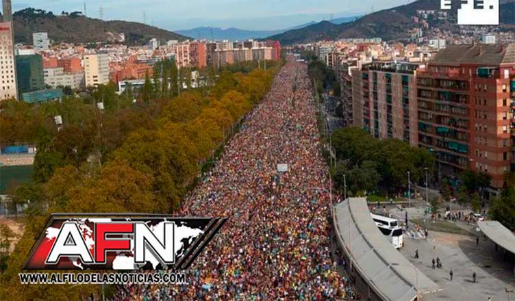Miles de personas llegaron hoy a Barcelona en cinco columnas desde varias parte de Cataluña para unirse en una gran manifestación de repulsa de la sentencia del Tribunal Supremo español, que el lunes condenó a penas de entre 9 y 13 años prisión a los dirigentes procesados por organizar un referéndum ilegal de “autodeterminación” en 2017.