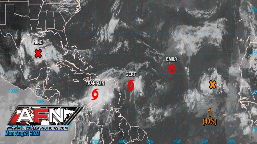 SANTO DOMINGO.- El Centro Nacional de Huracanes informó la tarde del lunes que el centro de la tormenta tropical Franklin se mueve hacia el oeste a unos seis kilómetros por hora.
