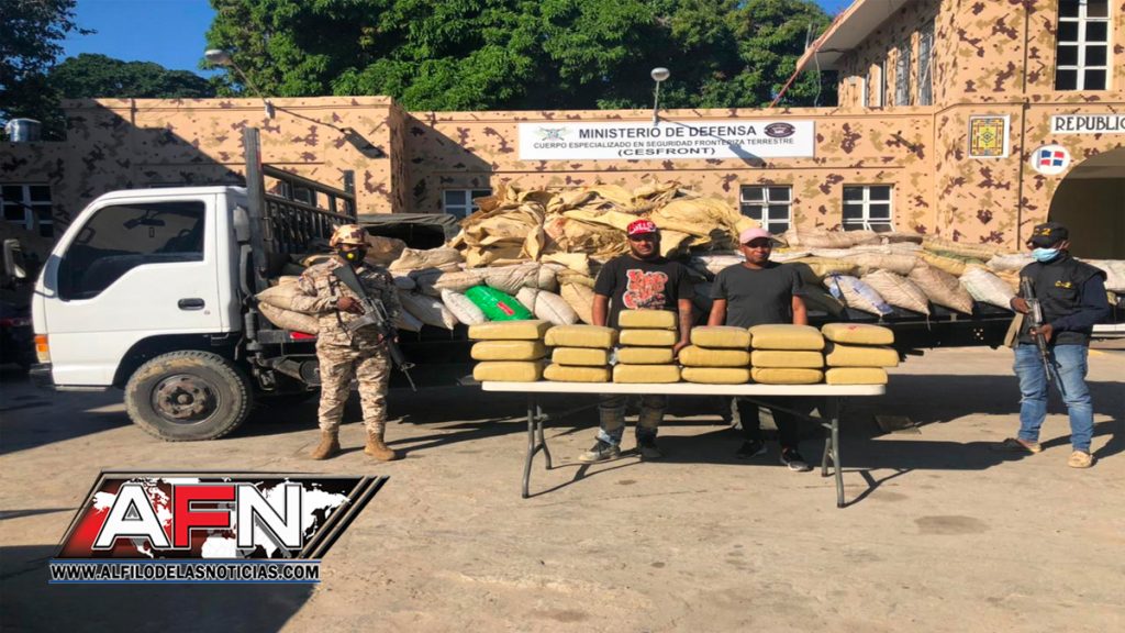 Según un comunicado, miembros del Cesfront asignados a la Base de Operaciones Fronterizas Batalla Sabana Larga, interceptaron el camión marca Isuzu, color Blanco, placa 373203, el cual era conducido por el ciudadano Yan Carlos Francisco Moscoso Camacho, quien estaba acompañado por José Antonio Paulino Cruz.