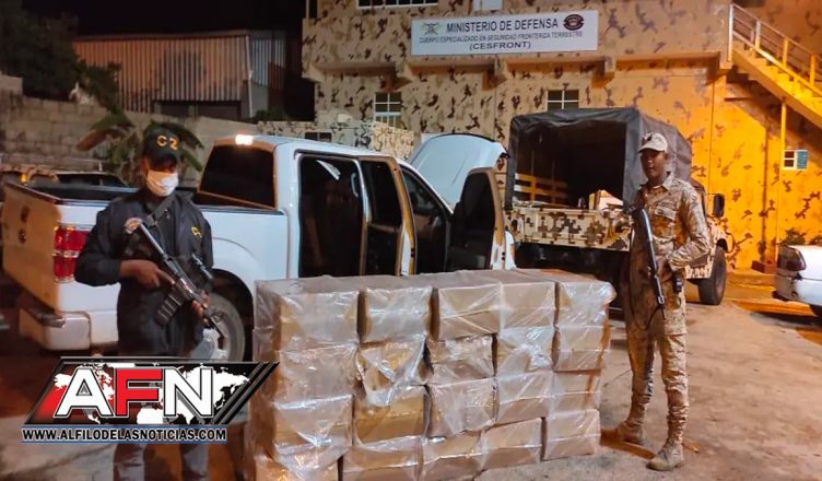 DAJABÓN. – Miembros del C-2, adscritos al Cuerpo Especializado en Seguridad Fronteriza Terrestre (Cesfront); incautaron varias unidades de cigarrillos a bordo de camioneta dejada abandonada en el sector La Bomba en la provincia de Dajabón.
