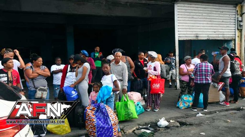 Con sus bultos y maletas en mano, los pasajeros de la parada que conduce a Neyba, Tamayo y Barahona, esperan abordar los autobuses mientras hacen largas filas, razón por la que algunos se quejaron debido a los retrasos.