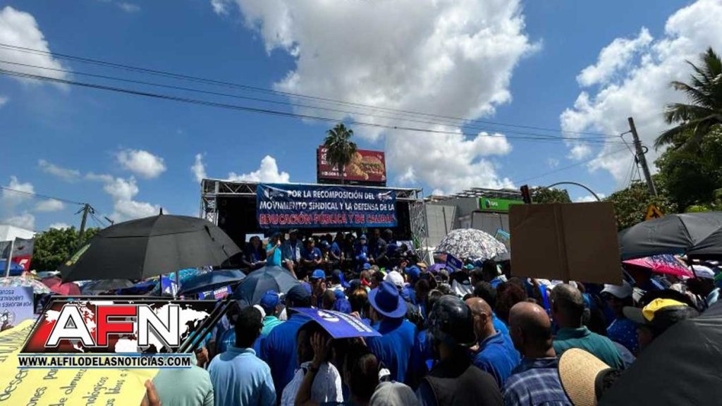 SANTO DOMINGO.- Cientos de profesores protestan este martes frente al Ministerio de Educación (Minerd) por la aplicación del aumento salarial de un 20% para este mes de abril, el que, dicen, se acordó el pasado año.