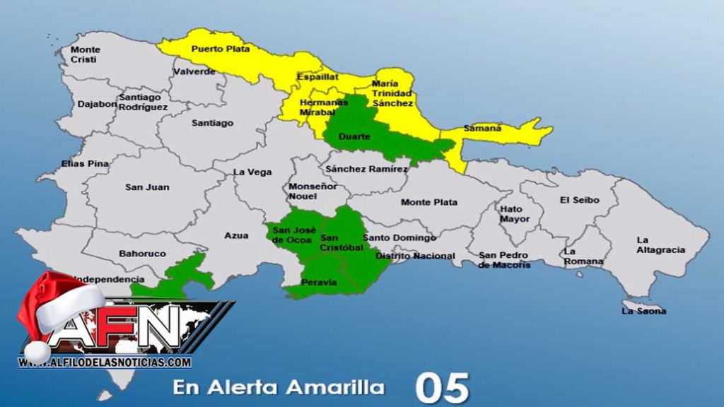 Las provincias en alerta amarilla están: Espaillat, Puerto Plata, María Trinidad Sánchez, Hermanas Mirabal y Samaná.