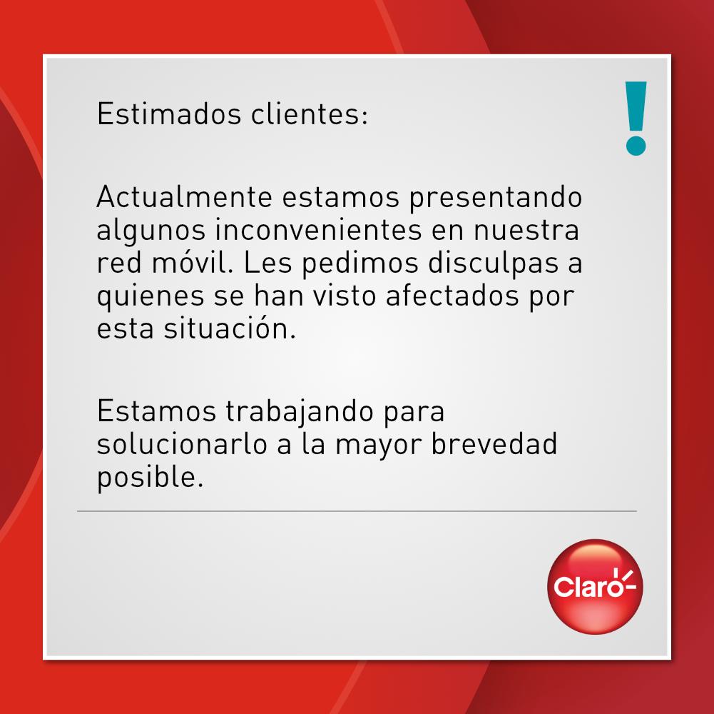 SANTO DOMINGO.- La empresa telefónica Claro informó este miércoles  a través de sus redes sociales que está presentando inconvenientes en su red móvil.