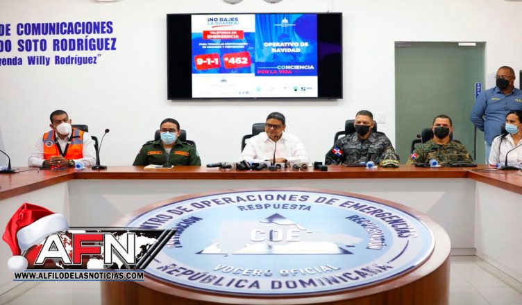 El Centro de Operaciones de Emergencias (COE) anunció este miércoles que a partir de 23 de diciembre y hasta el primero de enero de 2022 desarrollará el operativo preventivo “Conciencia por la Vida, Navidad y Año Nuevo 2021-2022” en el que participarán 41,237 personas y 22 instituciones.