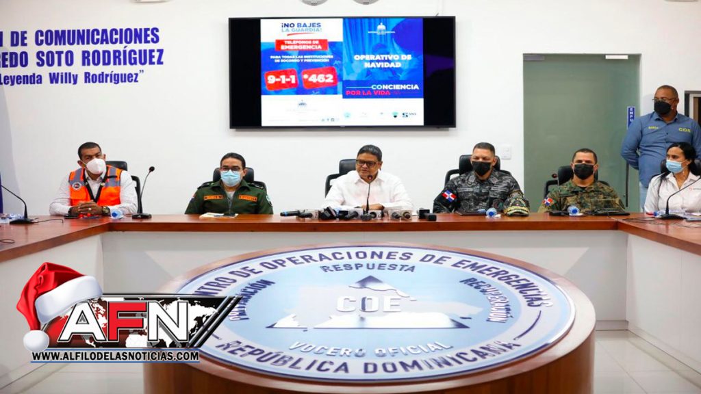 El Centro de Operaciones de Emergencias (COE) anunció este miércoles que a partir de 23 de diciembre y hasta el primero de enero de 2022 desarrollará el operativo preventivo “Conciencia por la Vida, Navidad y Año Nuevo 2021-2022” en el que participarán 41,237 personas y 22 instituciones.